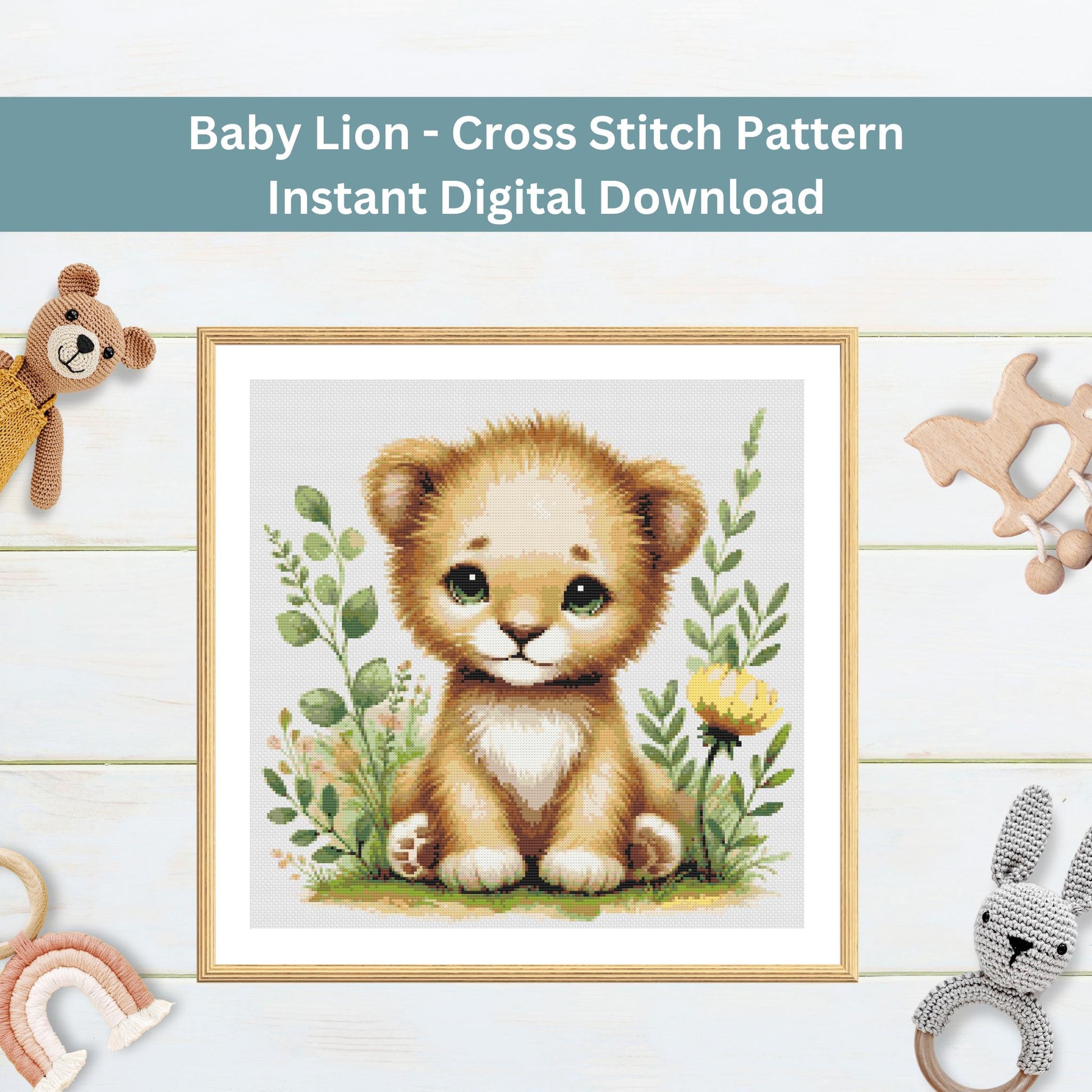 🦁✨ Créez un chef-d'œuvre de couture avec cet adorable modèle de point de croix de bébé lion à l'aquarelle ! ✨🦁