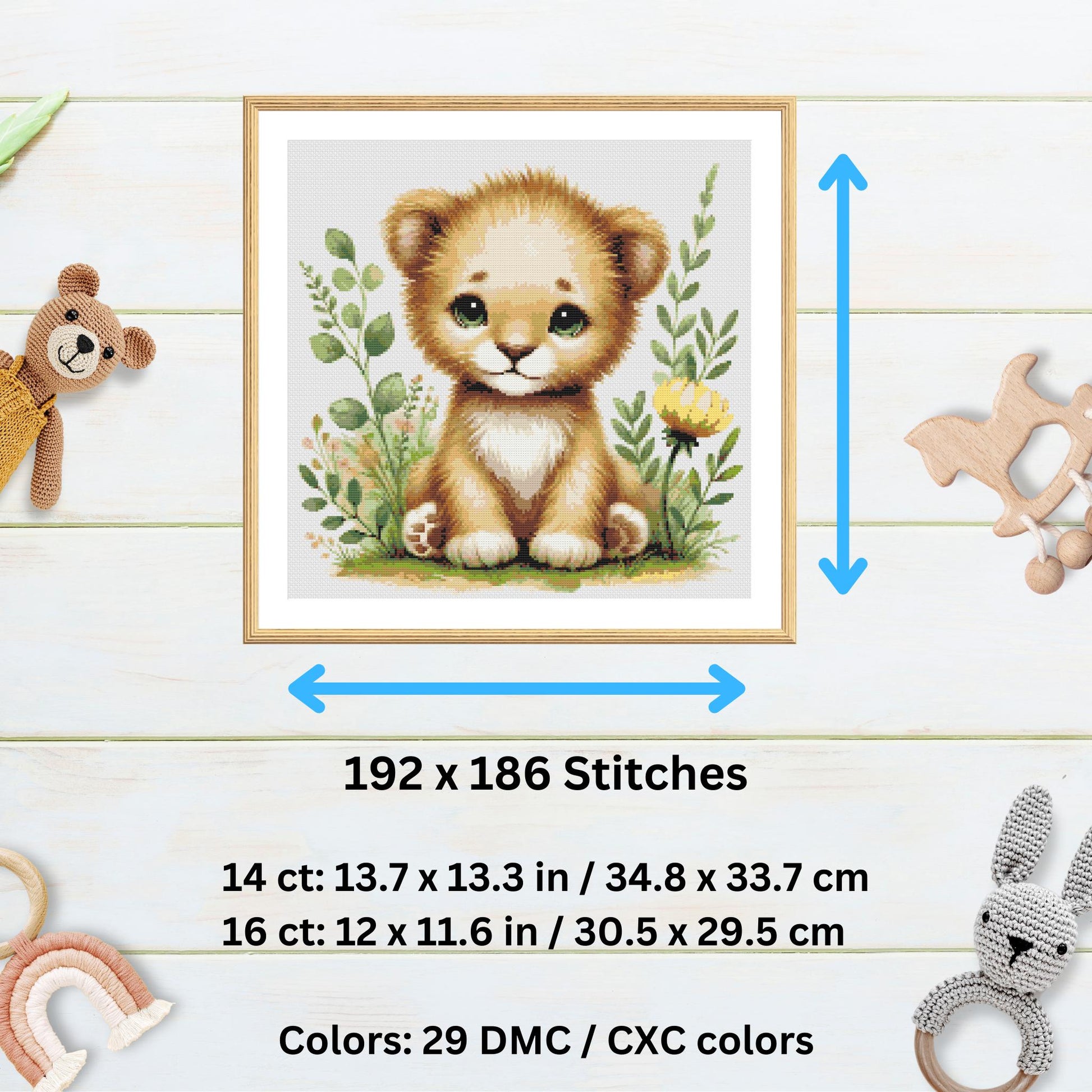 Doux, fantaisiste et plein de charme, ce motif de point de croix numérique donne vie à un adorable bébé lion grâce à un délicat effet aquarelle. Parfait pour la décoration de chambre d'enfant, les cadeaux ou tout simplement pour un projet de broderie relaxant !