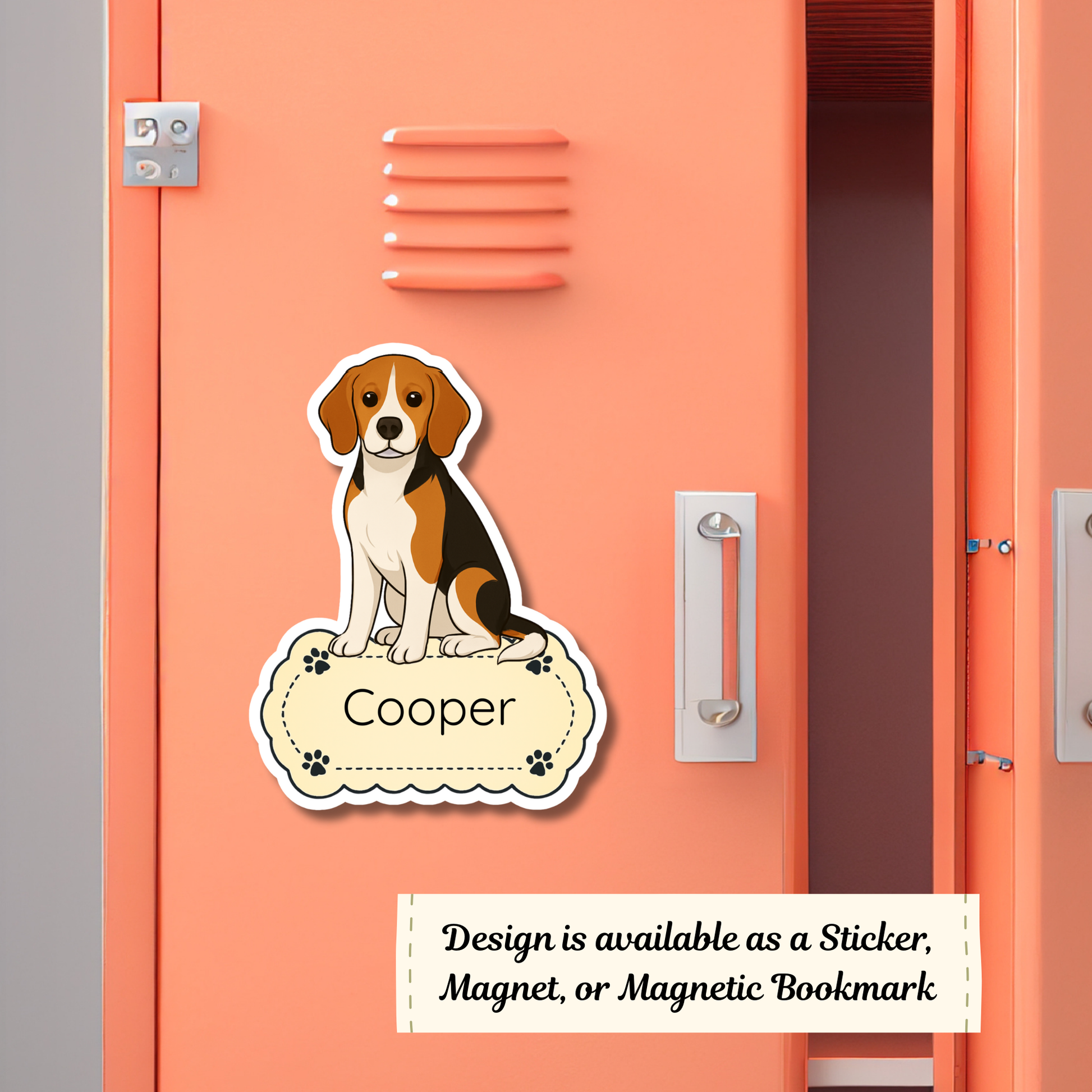 Autocollant personnalisé pour chien Beagle - Chocolat tricolore | Personnalisable avec votre nom