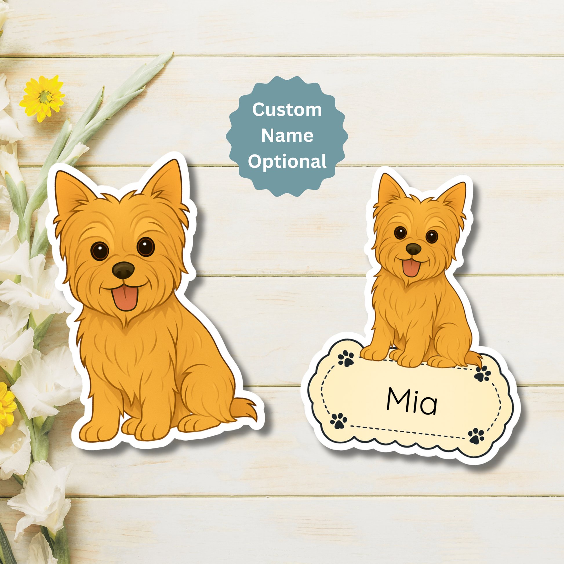 Aimant personnalisé pour Yorkshire Terrier - Oreilles coupées dorées | Personnalisable avec le nom de l'animal