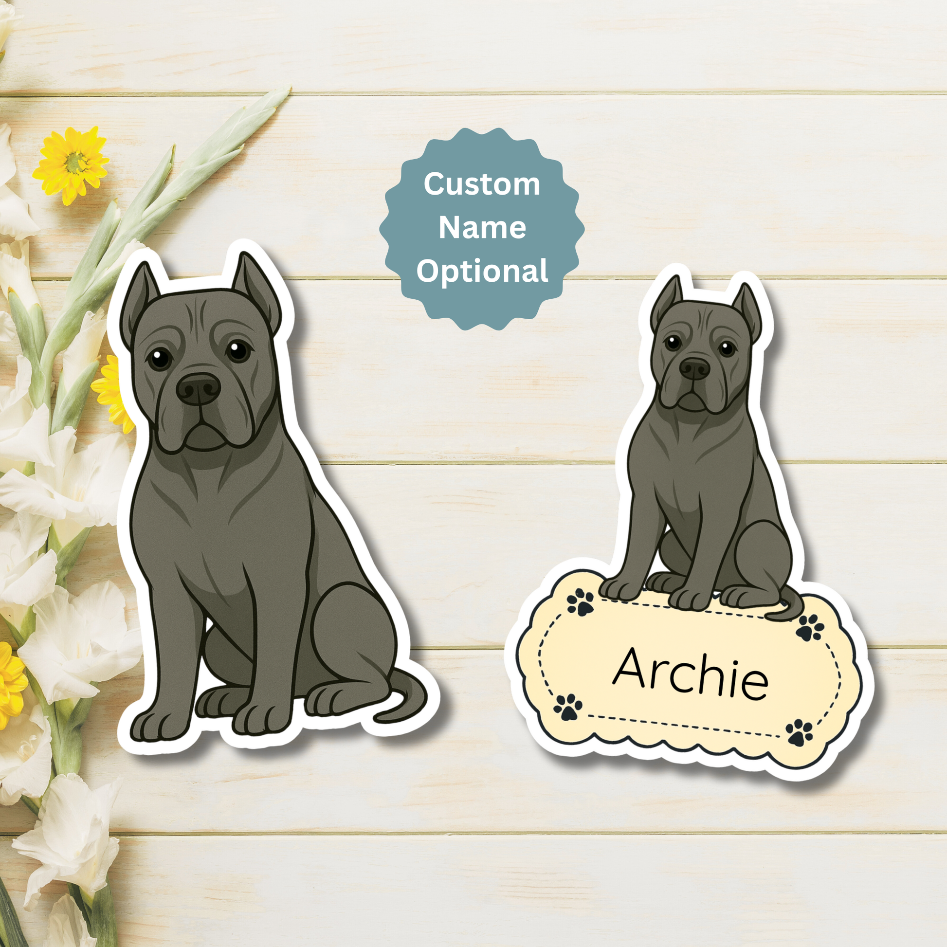 Aimant personnalisé pour chien Cane Corso - Gris | Personnalisé avec le nom de l'animal