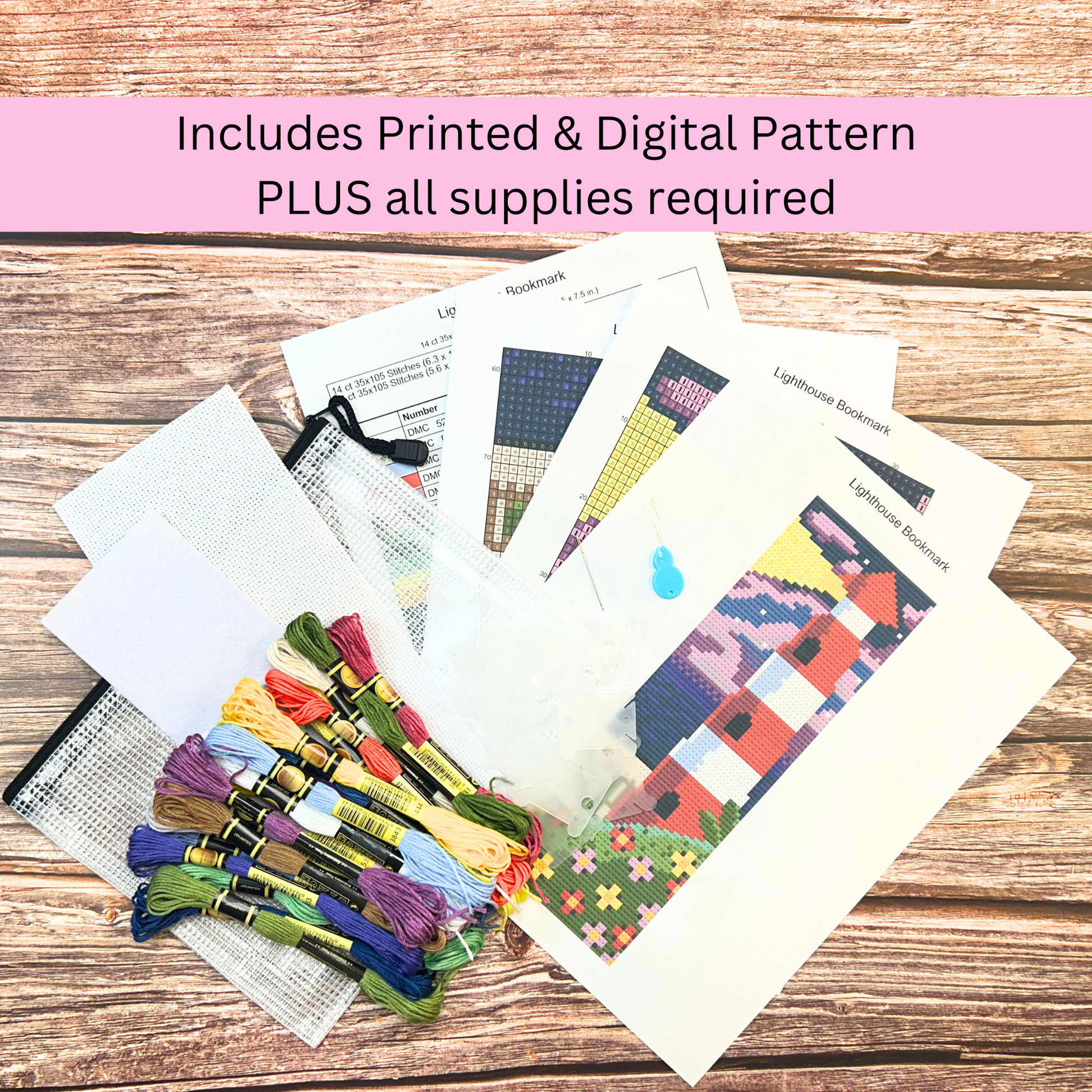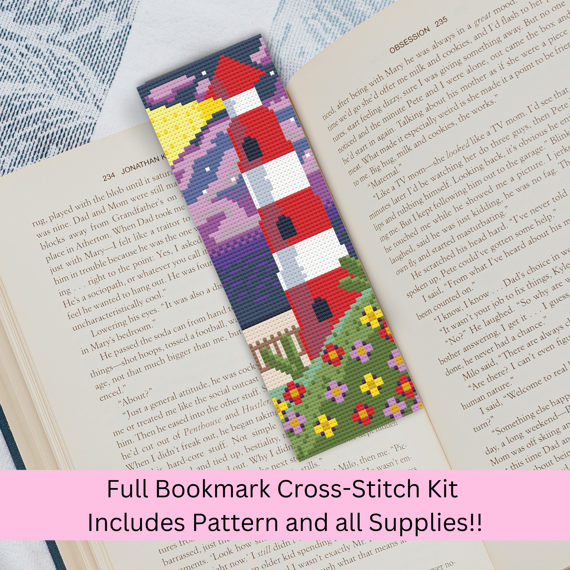 🏠 Kit de broderie au point de croix avec marque-page phare – Kit complet à faire soi-même – Cadeau de broderie pour débutants 🎁