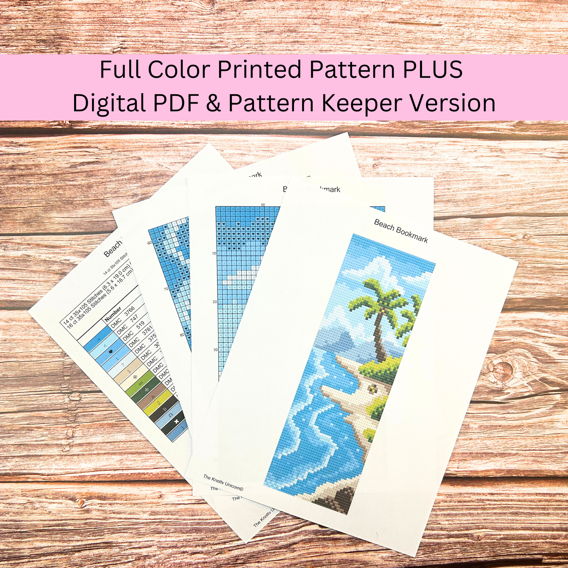 🏖️ Kit de point de croix marque-page plage – Kit de broderie DIY complet – Patron imprimé et tableau numérique 🏖️