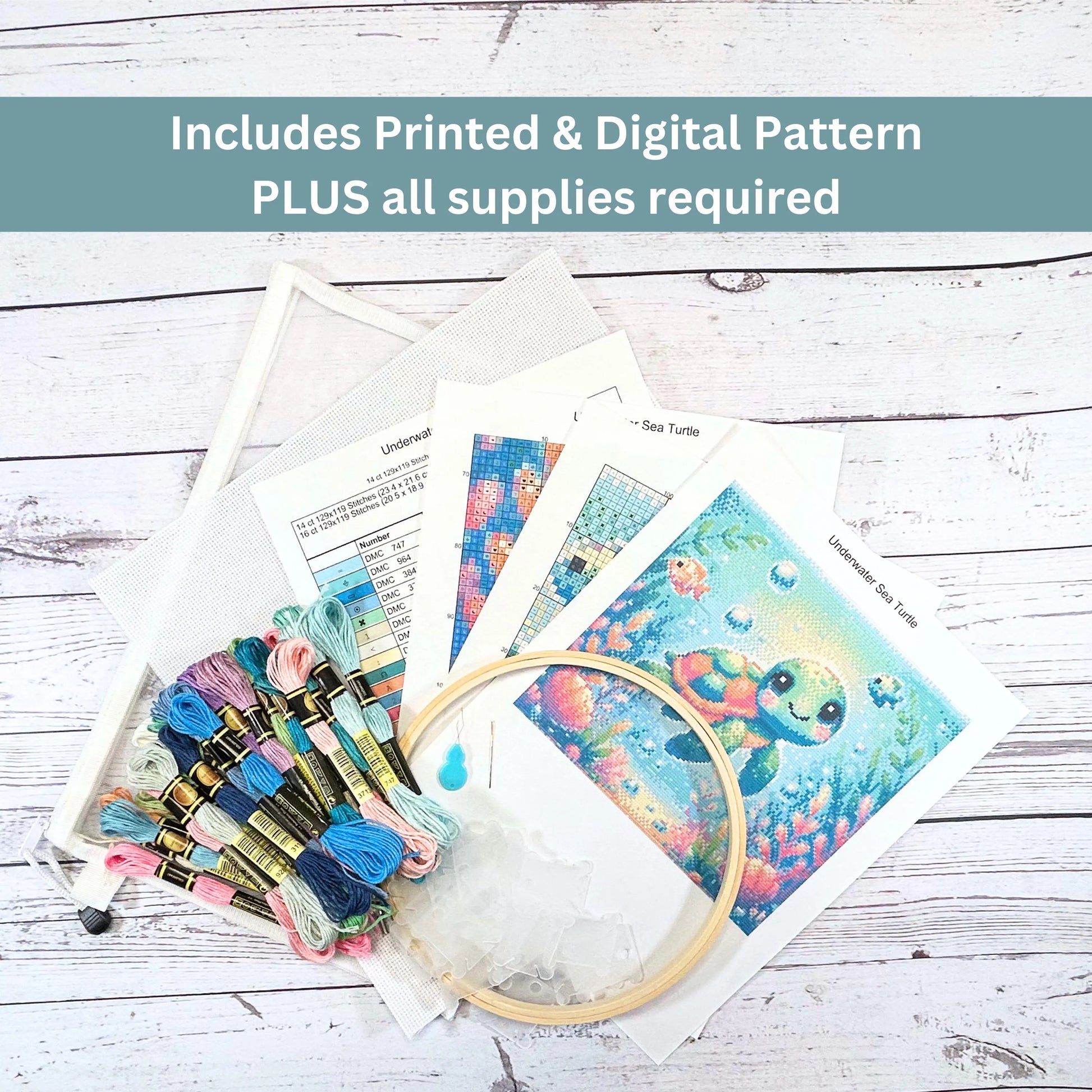 Embarquez pour une aventure sous-marine avec ce kit de broderie au point de croix Tortue de mer ! Parfait pour les débutants comme pour les brodeurs expérimentés, ce ravissant kit met en scène une tortue de mer vive et ludique dans un décor océanique coloré.