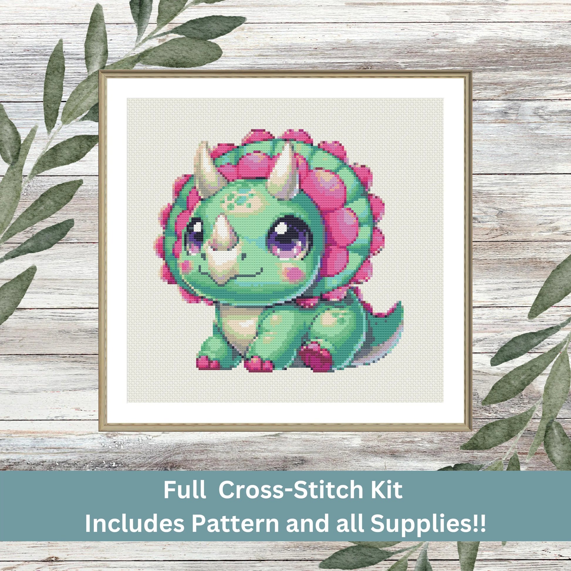 Kit de broderie au point de croix dinosaure – Adorable bébé dinosaure, kit complet pour débutants
