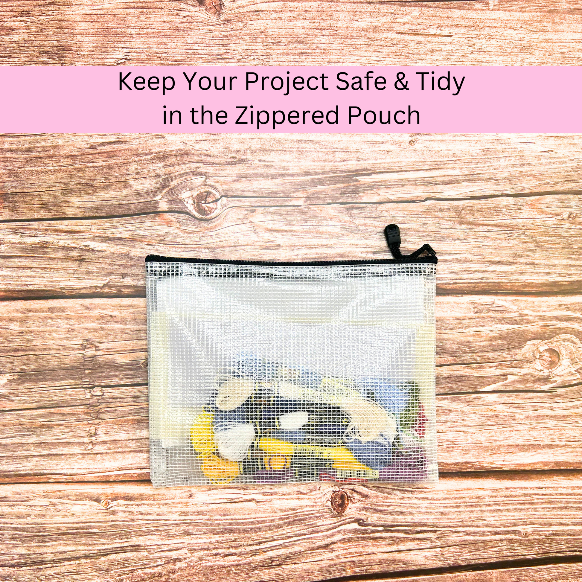 Pochette de rangement : une pochette zippée en maille robuste pour garder votre projet organisé.