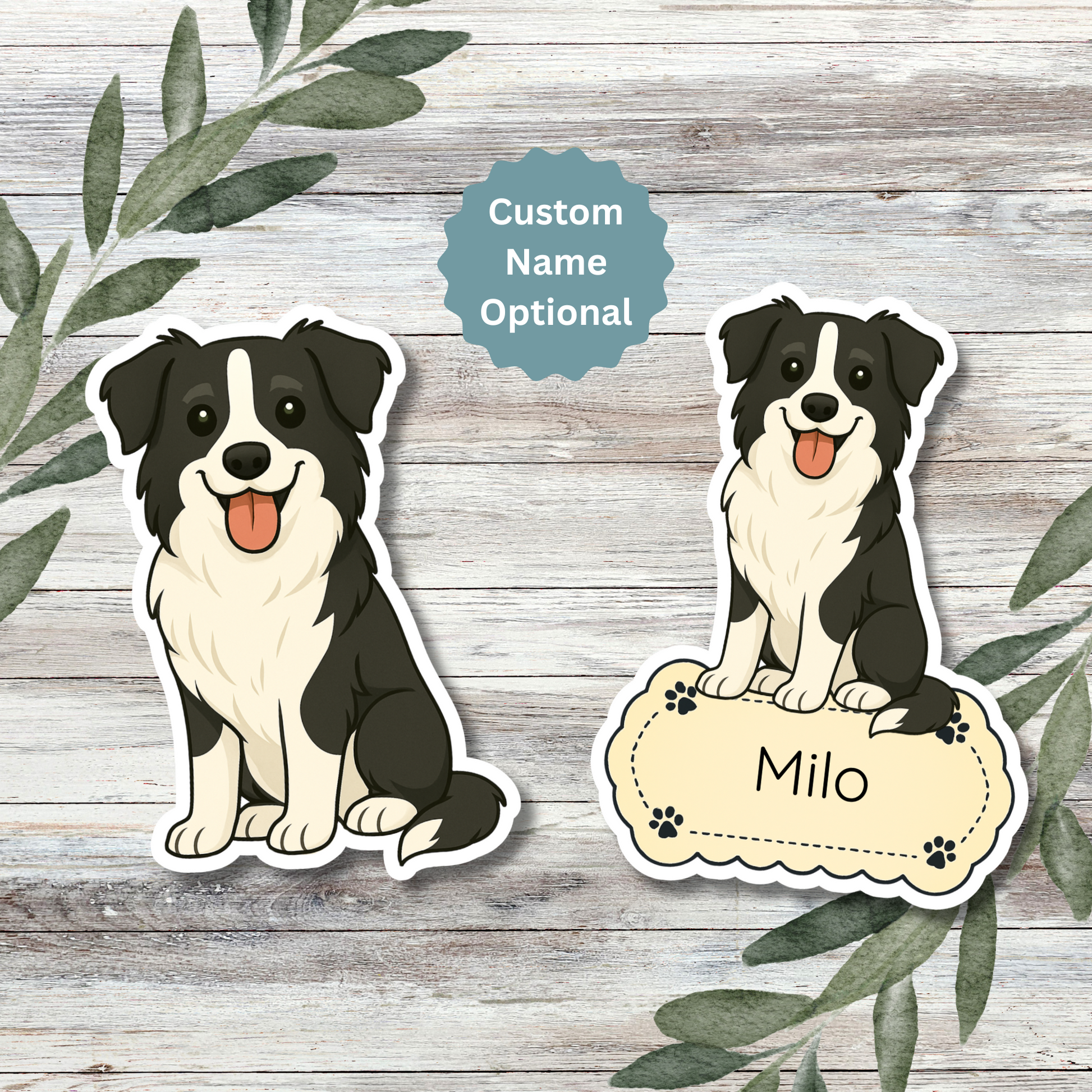Custom Border Collie Dog Sticker - Black and White | Personalized with Name