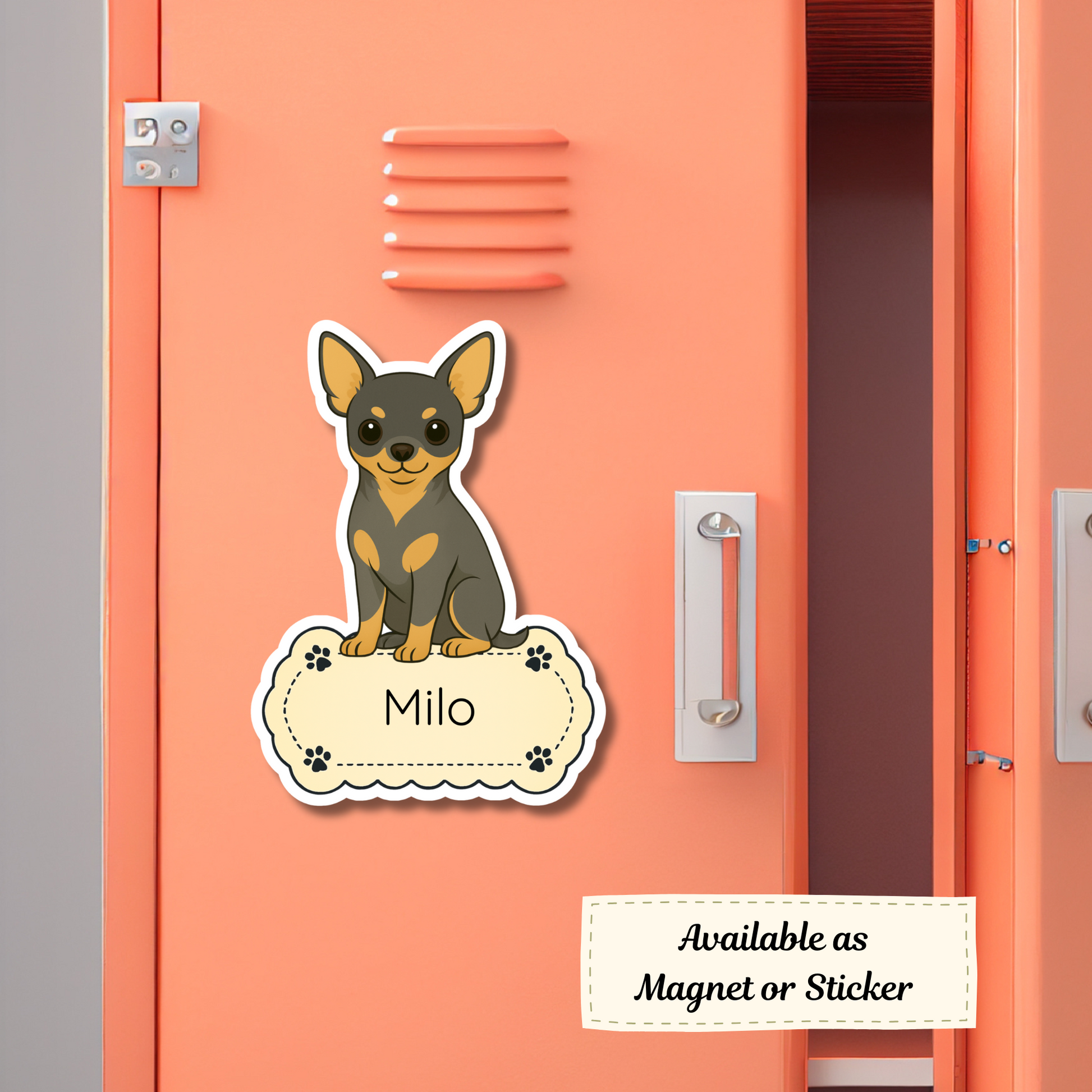 Custom Chihuahua Magnet - Short Haired Black and Tan | Personalized with Pet Name