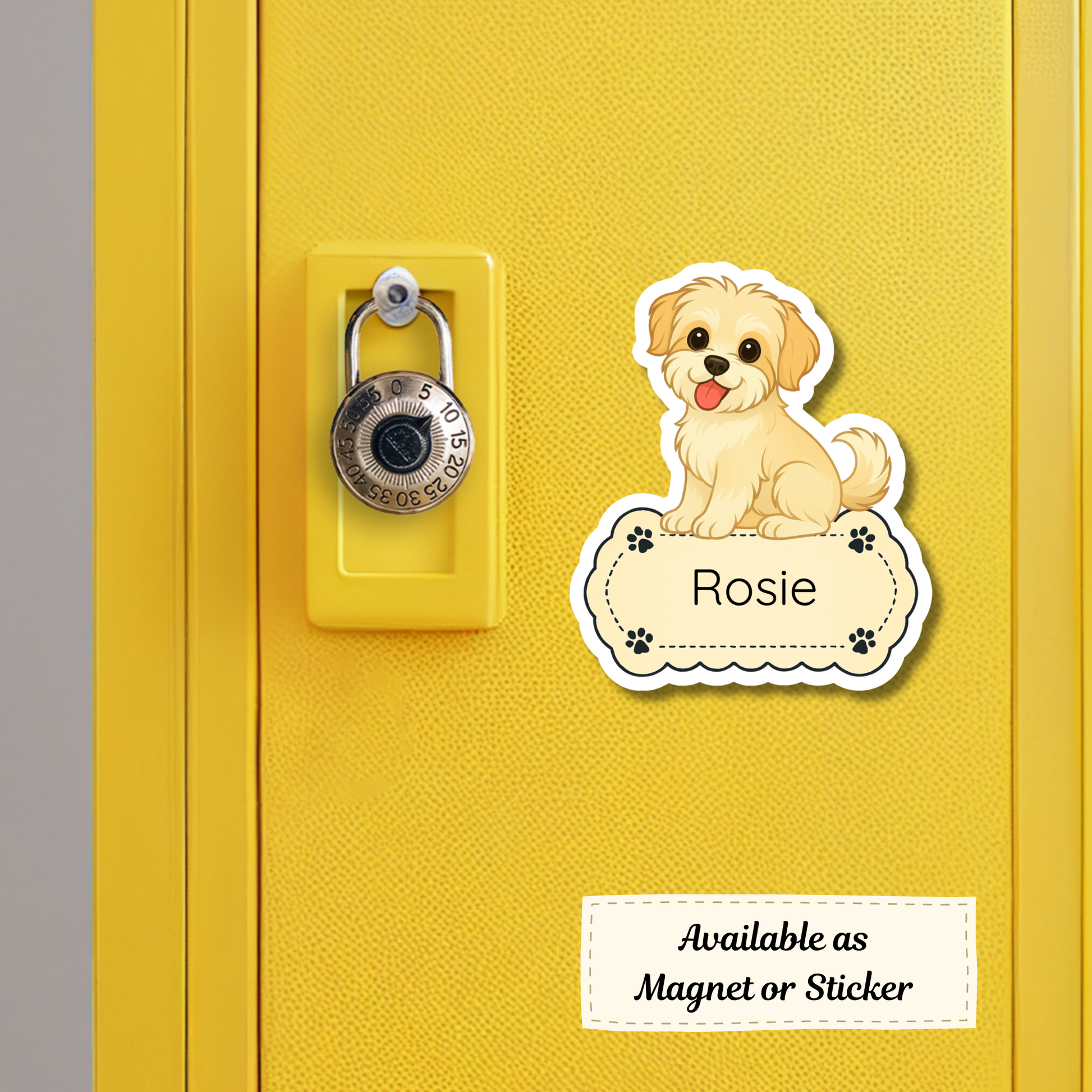Custom Shorkie Dog Sticker - Gold and White | Personalized with Name
